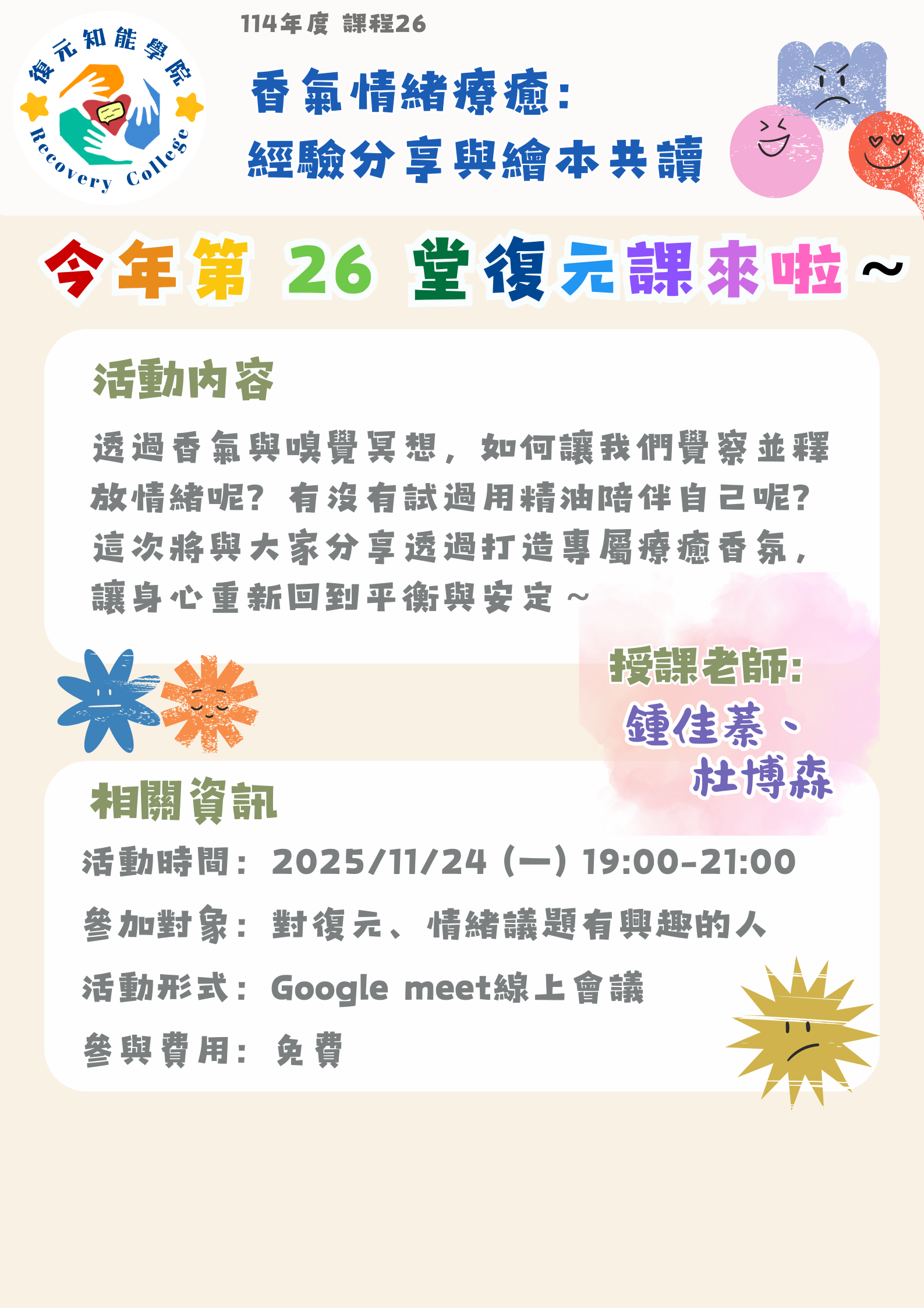 【 香氣情緒療癒:經驗分享與繪本共讀 】
