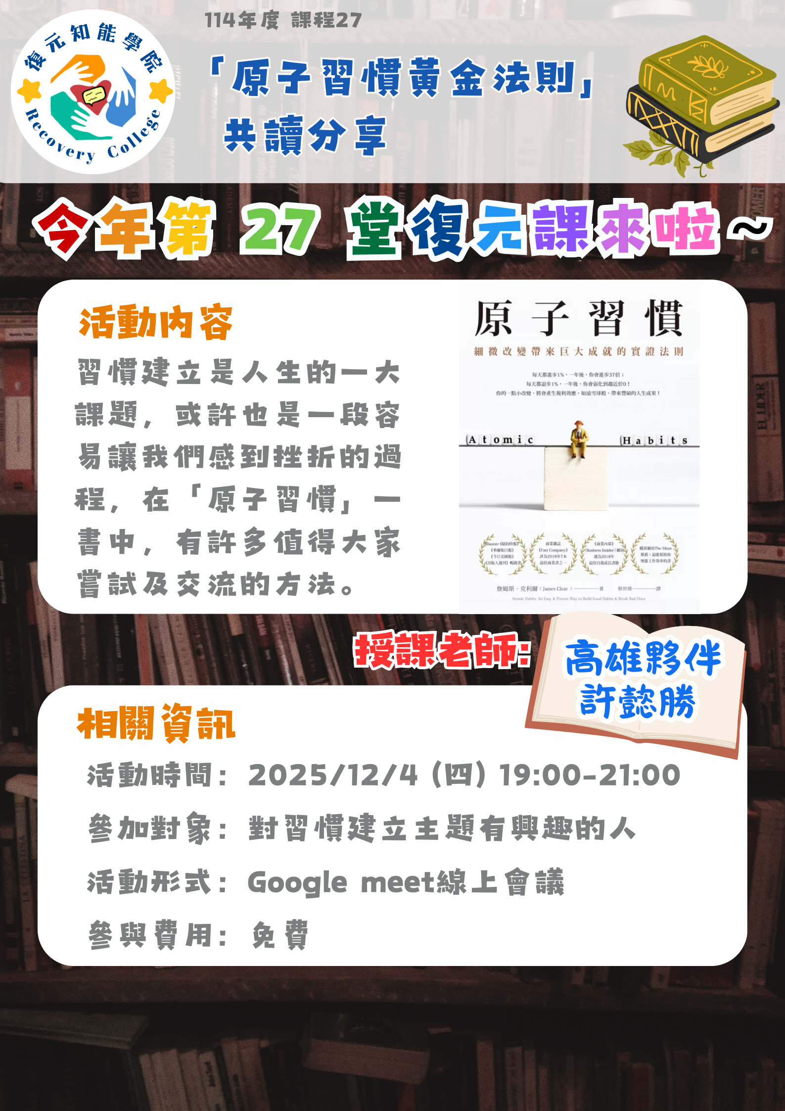 【 「原子習慣黃金法則」共讀分享 】 在