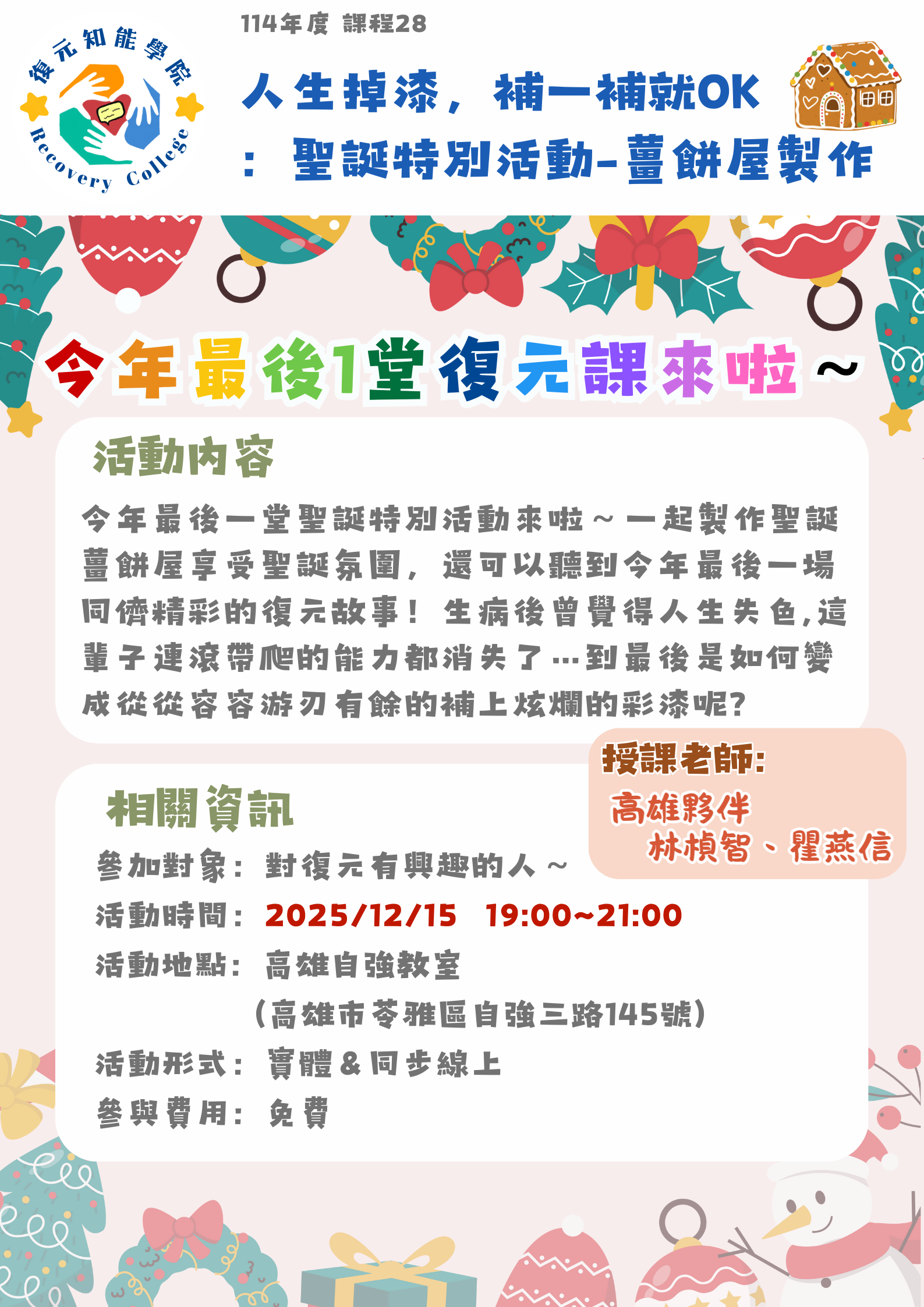 【人生掉漆,補一補就OK:聖誕特別活動-